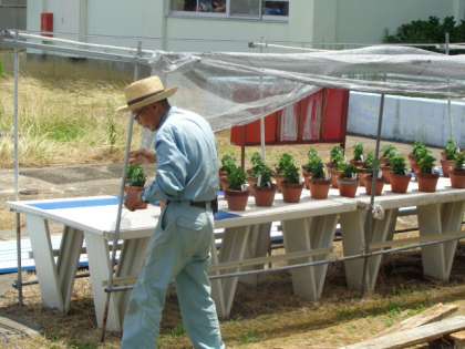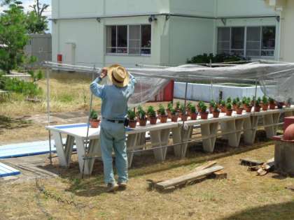 この猛暑に、菊花会の方が、児童が育てている菊の様子を気に掛けてくださり、日光を避ける寒冷紗を掛けてくださいました。