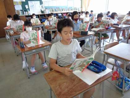 先週、校内研修で音読指導について取り組みました。読む姿勢だけでなく、教科書の持ち方に変化が見られました。次のページがすぐめくれるように指を入れています。やる気がみなぎっています。