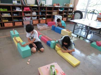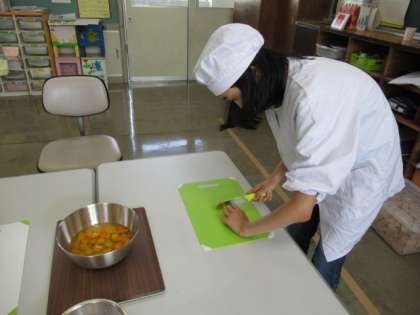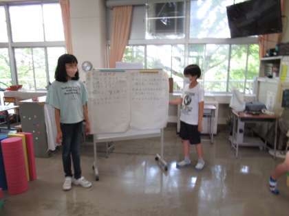 おひさま級を招待して、なかよしにこにこ集会を行いました。今までの練習を生かし、自分たちで考えて、集会を進めることができました。ドミノ倒しのドミノの並べ方を工夫したり、おいしいフルーツポンチになるよう、丁寧に果物を切ったりと一生懸命に取り組んでいました。招待した2人へのおもてなしの心も忘れませんでした。2人のがんばりのかいあって、おひさま級のみんなも喜んでくれました。集会名の通り、なかよしになって、にこにこ笑顔になれました。