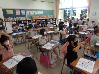 2年生の空書き(文字を空中に指で大きく書く動作)がしっかりしていました。指書きがしっかりできると言うことは、形をしっかり捉えていることの証となります。前で見ている教師には、それがとてもよく伝わります。