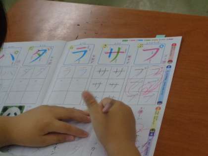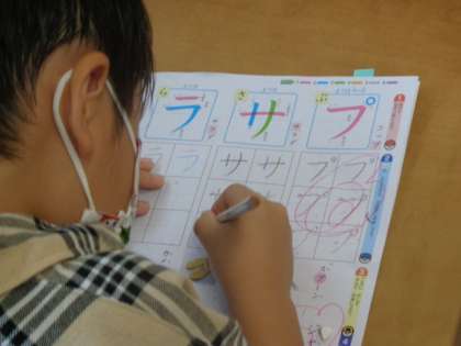 昨日に引き続き、カタカナの学習に挑んでいました。今日の字は「サ」です。サマー、サイクリング、サイダー・・・夏を連想する言葉がたくさん出てきます。