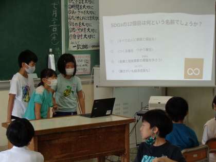 各係が、これまでの取組と関連付けたクイズやゲームを行い、楽しい時間を過ごしました。1学期の学級活動をしめくくりました。