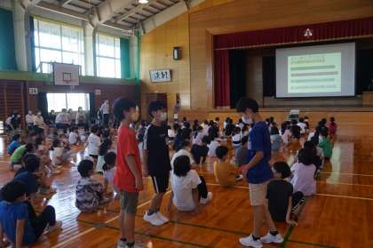 今日から2学期のスタートです。始業式でよいあいさつの仕方を体験しました。