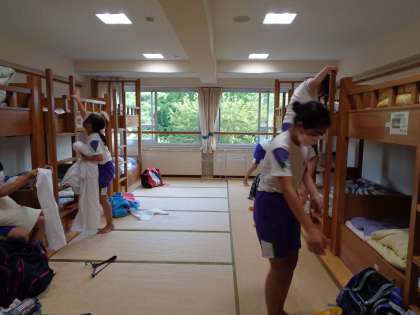 子供たちは午後の活動を終えました。子供たちは今、部屋でベッドメーキングに励んでいます。
