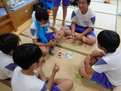 入浴時間までのフリータイム。子供たちは部屋で思い思いに過ごしています。