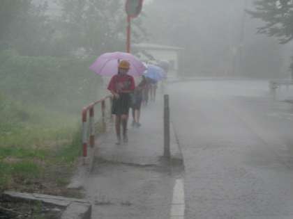 今回は登校途中に降り出して合羽の着用が追いつかずに濡れた児童が多かったようです。