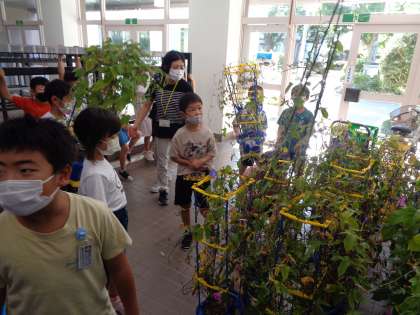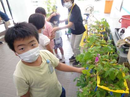 来る台風11号に備えて、1年生のアサガオも念のため避難しました。被害のないことを祈りたいですね!