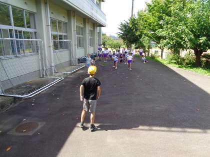 気温が上がってきたので、日陰を利用してみんなで楽しく体を動かしました。