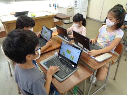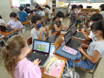 どんな者をもっていきたいかたくさんの候補を挙げて、jamboardを使って集まった情報を仲間わけして整理しています。