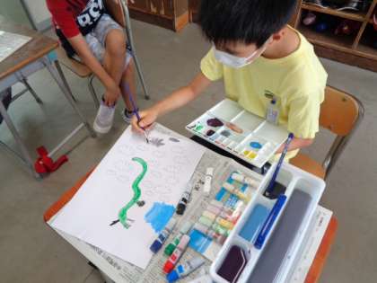 子供たちの作品は、花の形や色にそれぞれの「まぼろし」を表現していておもしろい作品ぞろいになっています。