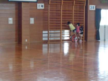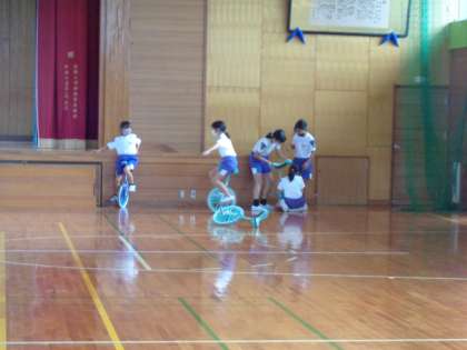 休み時間には体育館で一輪車で遊ぶのが、このところの女子児童の静かなブームです。