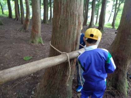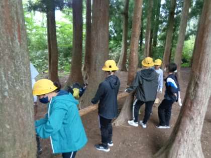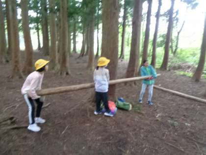 午後の活動「森の遊び場づくり」の様子です。
