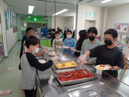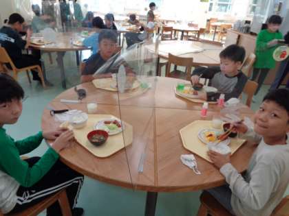 今日はこの野外炊爨です。お昼に備えてしっかり食べている子も多いようです。