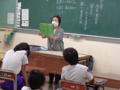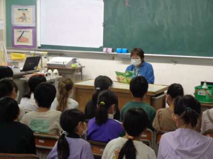 おはなしの会「夢」の方々にお越しいただき、3,4年生に読み聞かせをしていただきました。こちらは読書の秋です。