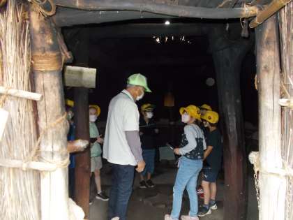縄文時代の人々の暮らしの様子についてのお話を聞いたり、火起こし体験をしたりしました。さまざまな体験を通して、子供たちは縄文広場の紹介したいじまんを考えていました。
