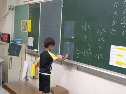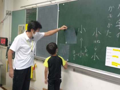 「かんじのかきかた」を坪坂先生と学習していました。