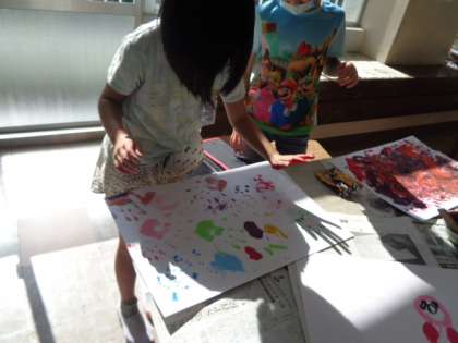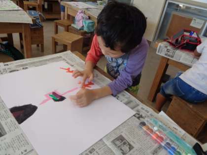 手触りや画用紙に付けたときの形状を楽しみつつ、「とろとろ」の特性を生かして自分らしい表現をしようと試行錯誤しています。
