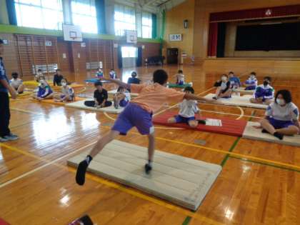 5年生は学習発表会で披露する体育表現の練習に入っていました。
