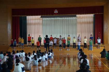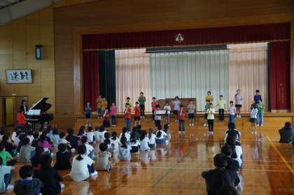 7日(金)に区域音楽会にて、合唱を発表する4年生。