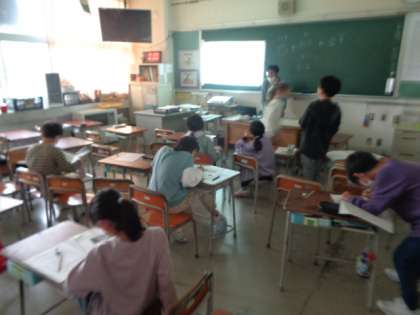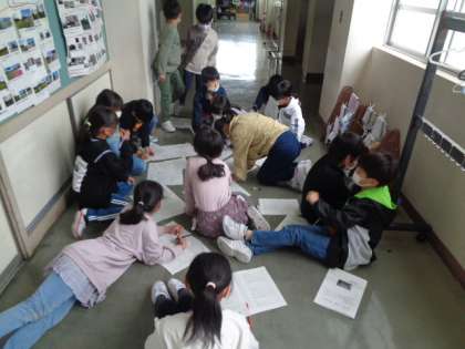 3年生が、教室と廊下の二手に分かれて何やら真剣に相談をしていました。