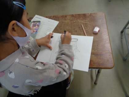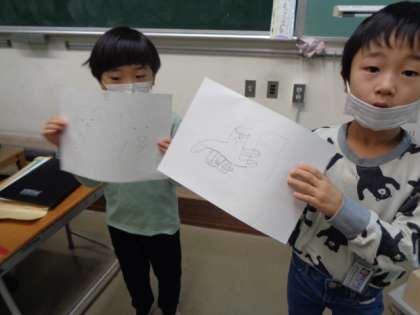 学習発表会に向けて、生活科でアサガオを育てた場面を思い出し、その様子を1人1人が絵に描いていました。この絵をもとにして、音読が展開されるようです。