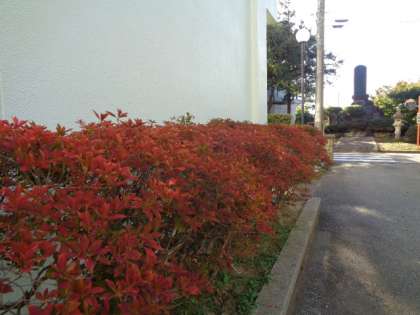 すっかり秋も深まりました。 灯台躑躅が赤く色付いてきました。