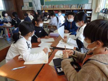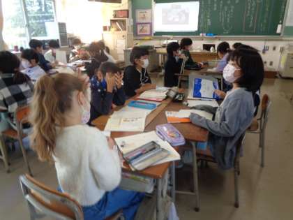 あるテーマについて意見をまとめる手段について学んでいます。教科書の例を元に、自分たちでもテーマを設定して意見をまとめていました。ちなみに子供たちのまとまった考えを生かして、パーティーを実現させるのだとか。子供たちの真剣な姿勢の秘密が分かりました。