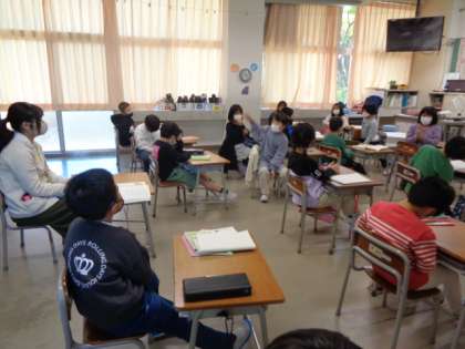 国語科「お手紙」の音読発表会を終えて、互いの表現への感想を共有している場面です。しっかり挙手・起立して自分の考えを述べている子が多く、感心しました。
