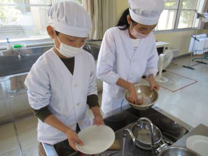5時間目に、学校の畑で育て収穫したさつまいもで、スイートポテトを作りました。さつまいもをつぶすのが、思ったより大変でした。でも食べたらおいしかったです。今日は試作だったので、この次作った時には、他の人にもわけてあげたいと思っています。