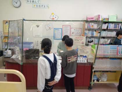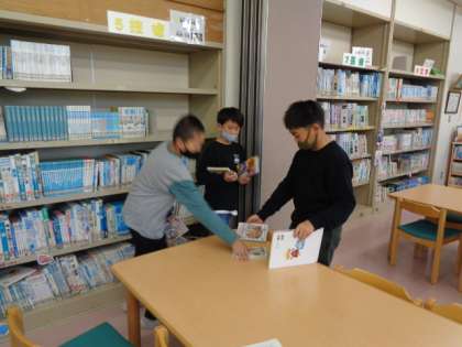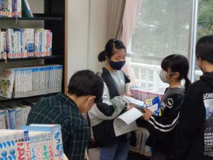 授業の隙間時間を活用して、全員で図書室を利用していました。