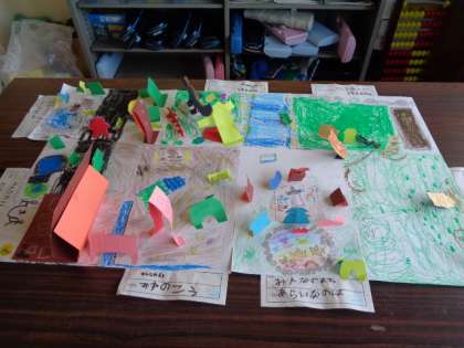 1年生教室前の階段踊り場に巨大な街が出現しました。
