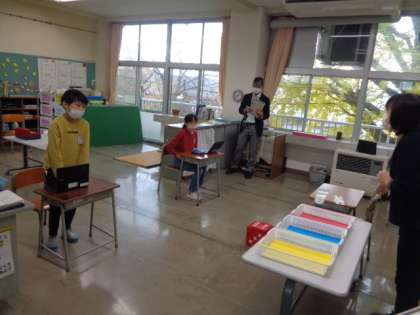 お話名人になることを目指して、様々な場面や状況での会話のやり取りについて学んでいます。