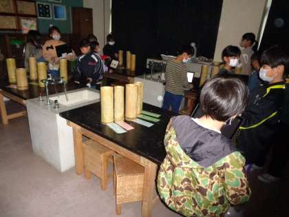 現在、竹灯ろうのライトアップで、自分たちの取組の広報活動に取り組んでいる6年生。