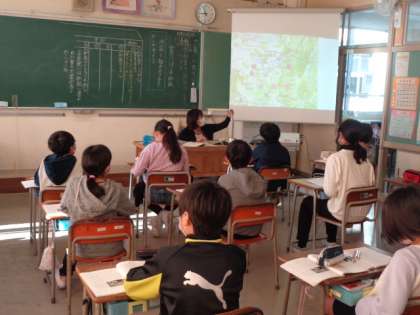 「世界にほこる和紙」の学習の様子です。教科書に取り上げられている正倉院について地図情報や映像をたよりに理解を深めています。