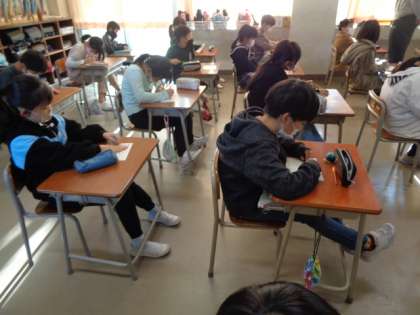 明日の体育で行う、2回目の体力テストへの目標を定めていました。1回目の記録をもとに自分の体力の向上を見つめていました。