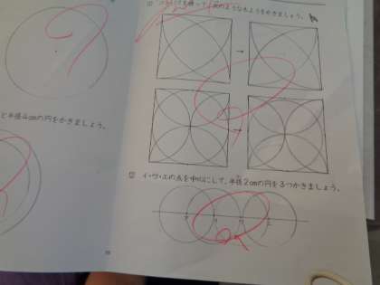 コンパスの使い方に習熟するための練習プリントが先生から返却される場面でした。
