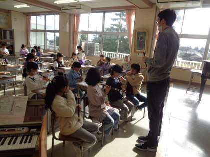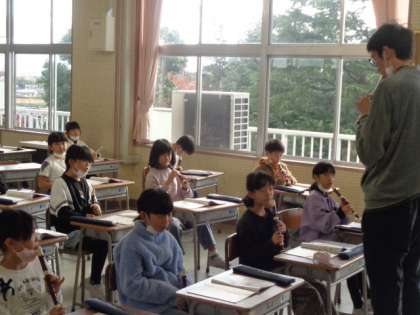 新しいリコーダーの練習曲を、まずは一斉に演奏した後に、自分に合った方法を選んで練習に励んでいました。