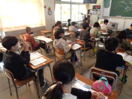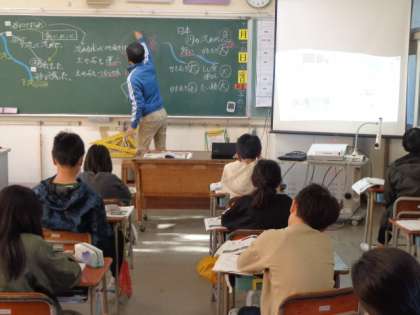 「流れの傾きがちがうと、なぜ担任の先生の板書をもとに真剣に考えていました。担任の先生の板書をもとに真剣に考えていました。