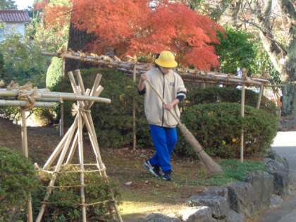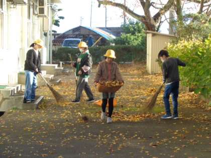 5年生の有志が毎朝、落ち葉を熱心に掃いてくれています。落ち葉とそれを掃く子供たちも合わせて美しい風景だと思います。