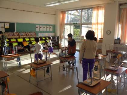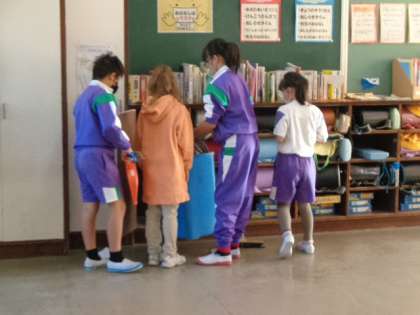 今週から、これまでは実施を控えていた縦割りグループによる清掃をスタートさせています(その2へ)。
