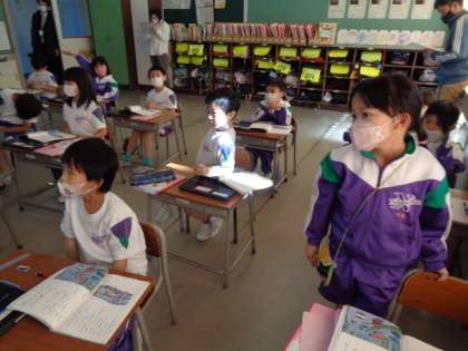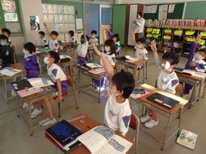 今日は授業研修のため、校内の先生方がたくさん見に来られる日でした。