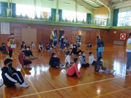 岡童委員会が特別校時で45分間の「なかよしタイム」(長い休み時間)をつくり、縦割りグループで行うイベントを企画・運営しました。