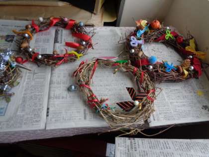 今日で11月も終わり。1年生のリースも完成作品が増えてきました。