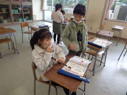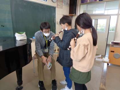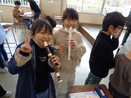 「山のポルカ」のリコーダー演奏のテストをしてもらっている場面のようでした。