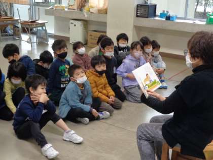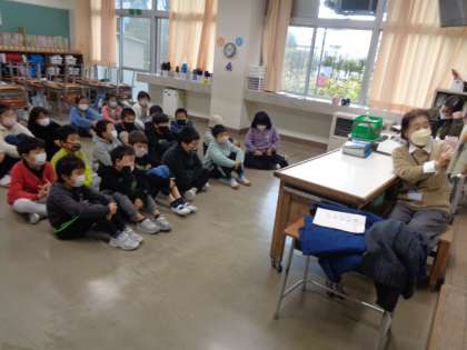 2023年最後の読み聞かせ活動を1,2年教室で行いました。