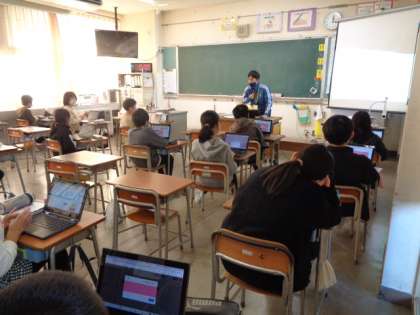 社会科で自動車工業について、各自のテーマで調べてまとめたプレゼンテーションが続々と完成し、発表が始まっていました。