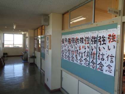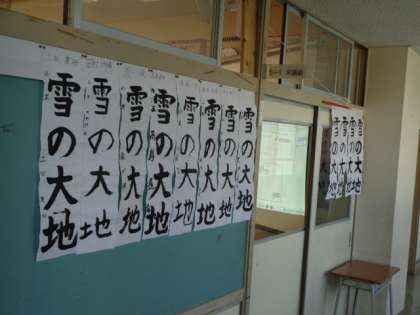 5,6年教室の廊下には書き初め作品が掲示され始めました。