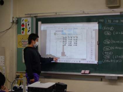 前回に引き続き、クラスのみんなに説明する学習場面に出会いました。