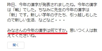 さっそく担任の先生が、Classroomの連絡コーナーに次のメッセージを投げかけられました。