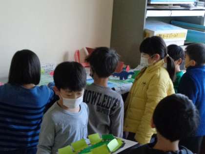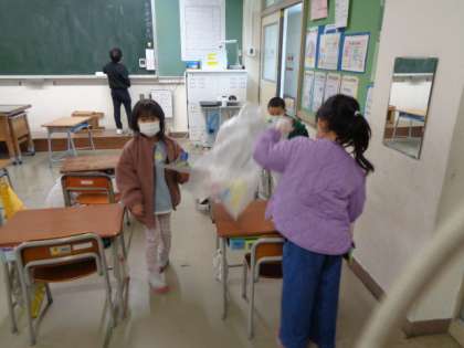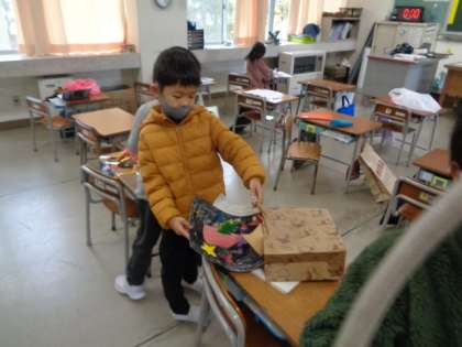 2学期に作った作品を少しずつ持ち帰ろう、ということで片づけを始めたところでした。